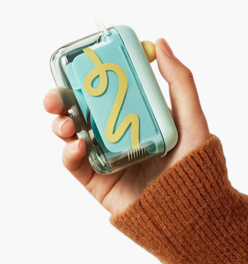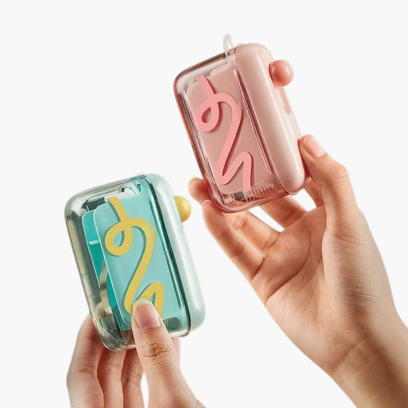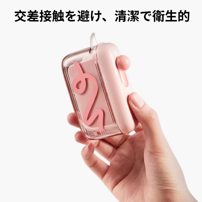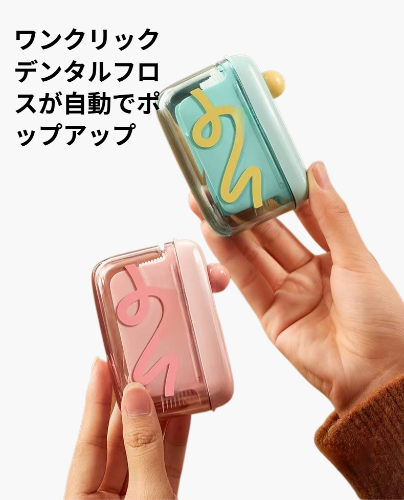 コンパクトなデンタルフロス収納ボックス。防塵設計で清潔を保ち、取り出しやすい構造。持ち運びやすく、洗面所や外出先でも便利に使用可能。
