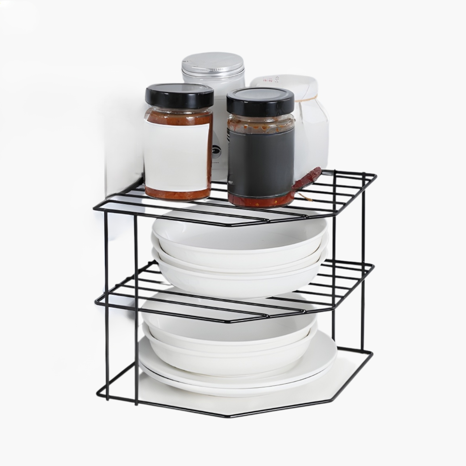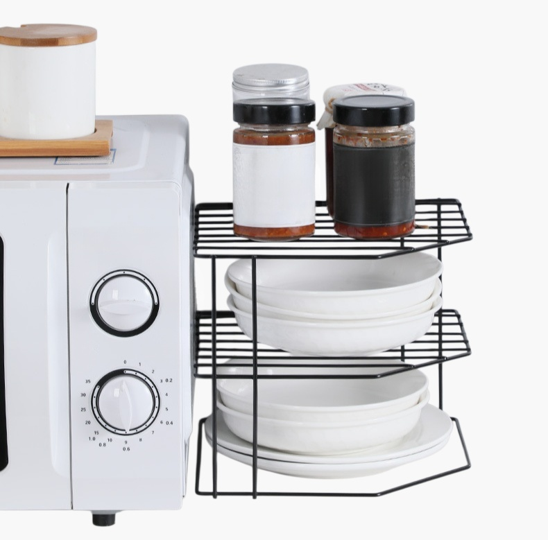 省スペース設計の扇形コーナーシェルフ。簡単設置でお部屋の角を有効活用。収納力アップ、整理に最適。